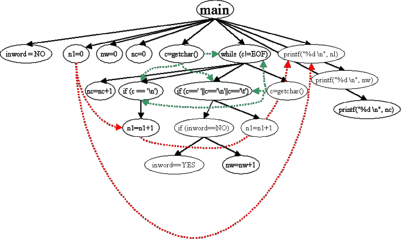 (i.e., do not draw data dependence edges for variables inword and nw and nc.
