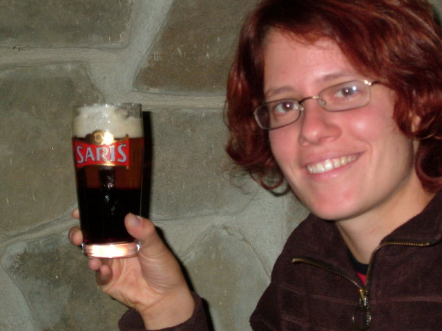 "cuting" a beer from dark and light beer of local brewery Saris